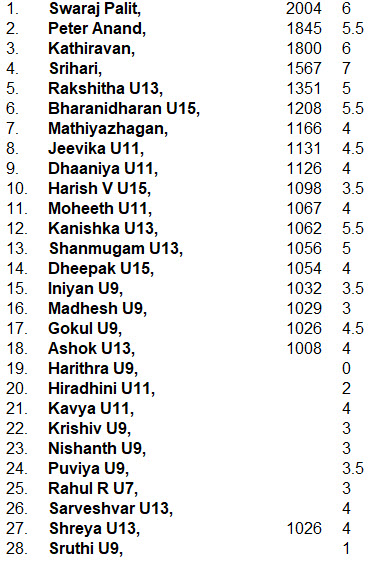 G.Gokul: National Under – 7: Seventh prize.